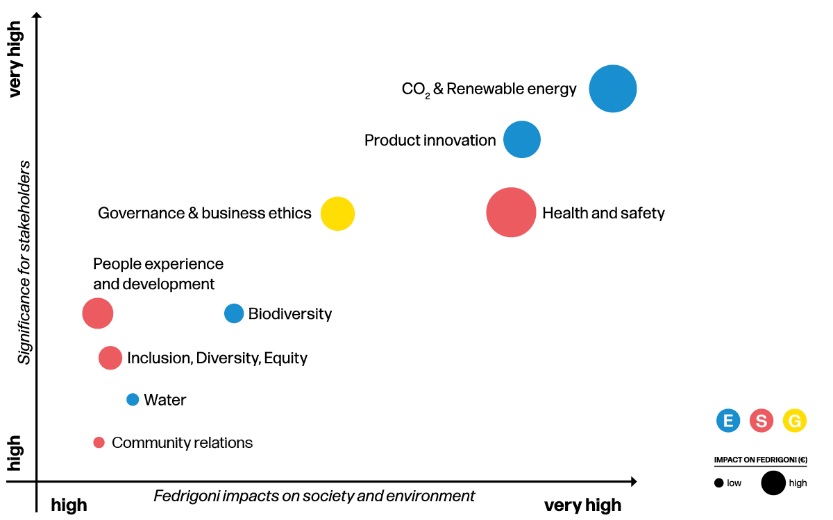 Since 2022, our materiality analysis has integrated the requirements of the GRI Standards with some of the Double Materiality framework included in the CSRD. The analysis encompasses: